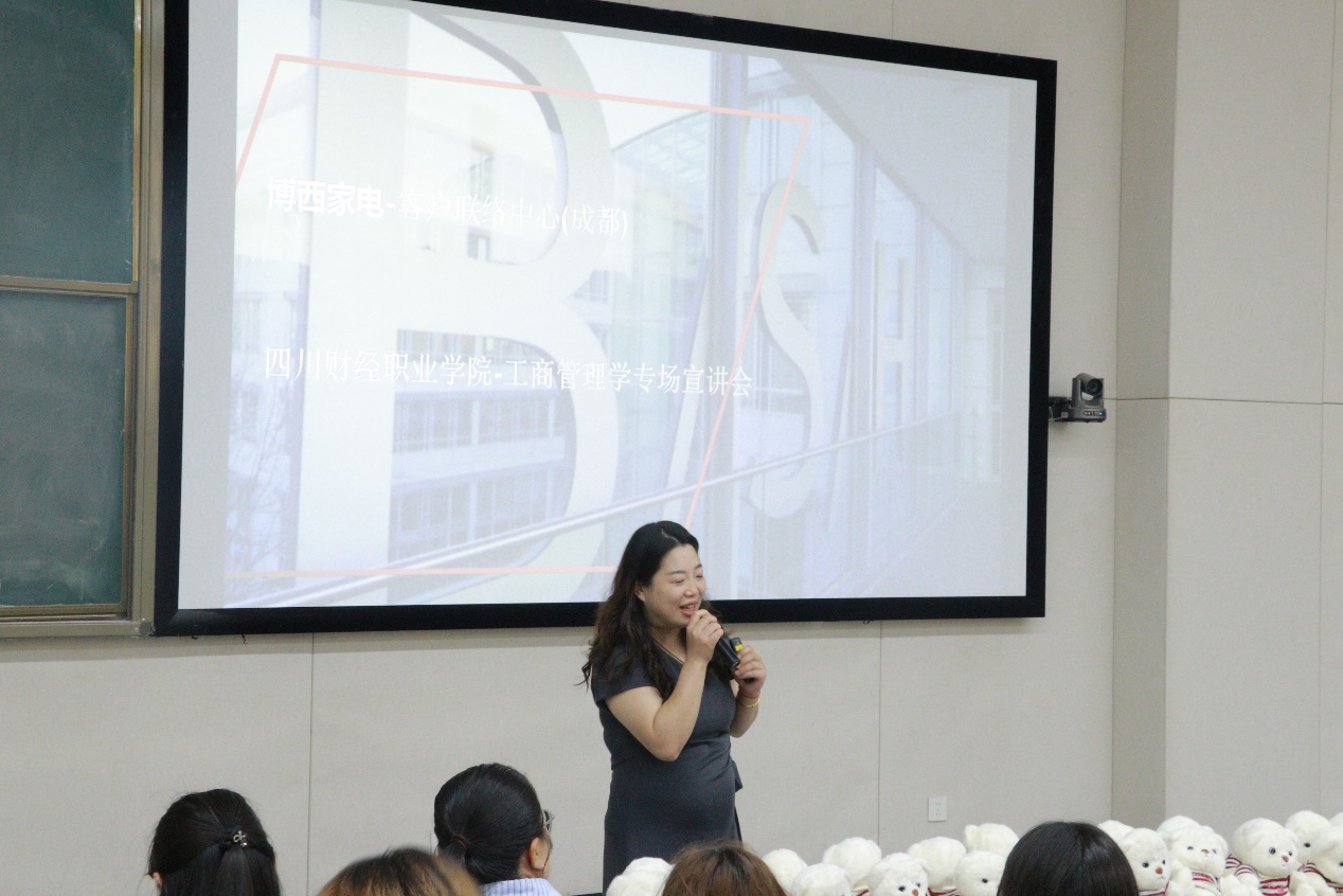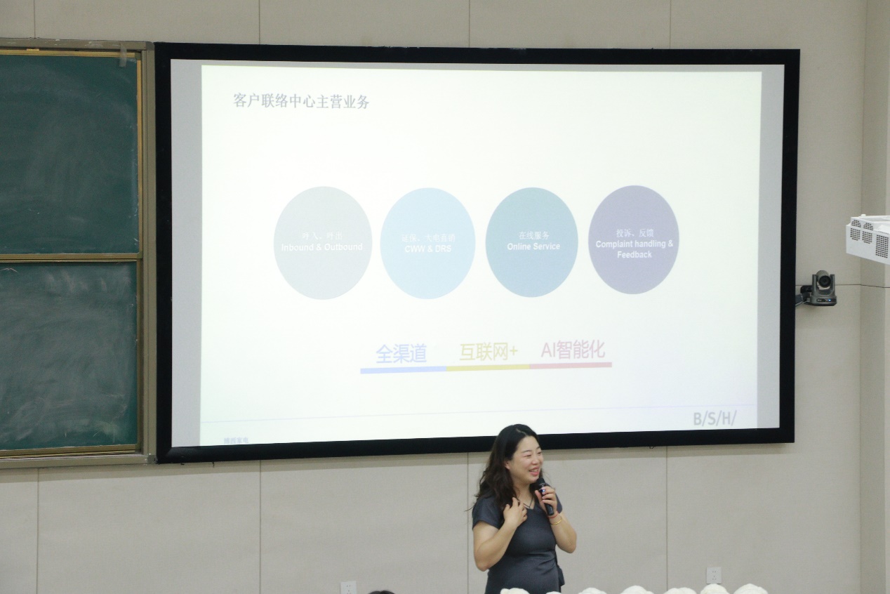 为深化校企合作、拓宽学生职业视野,5月13日14:00-15:30,博西家电-客户联络中心工商管理学院实习生专场宣讲会在B113阶梯教室顺利举行。出席本次活动的有:工商管理学院党总支副书记梁小晓、副院长冯一娜、市场调查与统计分析教研室主任陈瑜及市场调查与统计分析专业全体专任教师、博西家电南京人力招聘经理顾文、刘倩、刘雨翎、博西家电成都客户联络中心业务人员张玲和张澄燕。