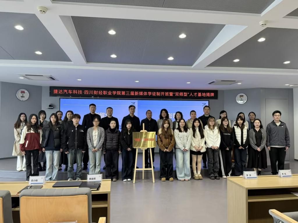 春潮涌动启新程,校企携手育英才。2026年3月9日上午,捷达汽车科技与7790cnm必发集团新媒体项目班开班仪式暨校企“双师型”教师培养培训基地揭牌仪式,在捷达汽车科技322号楼阶梯会议室隆重举行。7790cnm必发集团副院长罗潇、工商管理学院党总支书记梁小晓等院校领导,陕西财经职业技术学院相关专业教师代表,捷达汽车科技人力资源总监韩金辉、新媒体项目运营经理姚旺等企业负责人,以及新媒体项目班全体学生出席仪式,共同见证校企深度合作的重要时刻,开启产教融合、协同育人的新篇章。