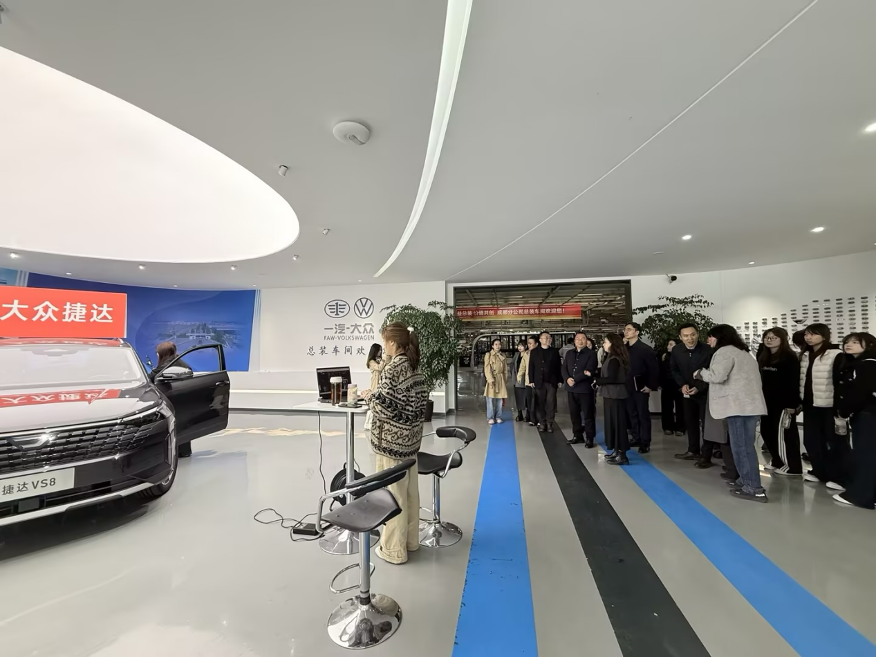 仪式结束后,在捷达汽车科技相关负责人的带领下,学院领导及项目班学员先后参观了企业焊装、总装车间精益生产线,以及新媒体直播中心。在生产线现场,学员们近距离观摩了汽车生产的全流程,感受了企业严谨的生产管理理念与先进的生产技术;在新媒体直播中心,大家详细了解了捷达汽车新媒体运营模式,现场观摩了直播实操过程,直观感受了行业实战氛围,进一步激发了学习热情。