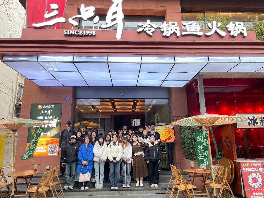 为深化产教融合,培养应用型新媒体人才,2025年3月15日,我校《新媒体运营》课程师生团队走进成都知名餐饮品牌"三只耳冷锅鱼"总店,开展校企合作实践调研活动。本次活动由课程主讲教师高靓梵带队,2023级工商管理专业23名学生通过实地参访、企业课堂、素材采集等环节,探索新媒体运营与实体经济的深度融合。