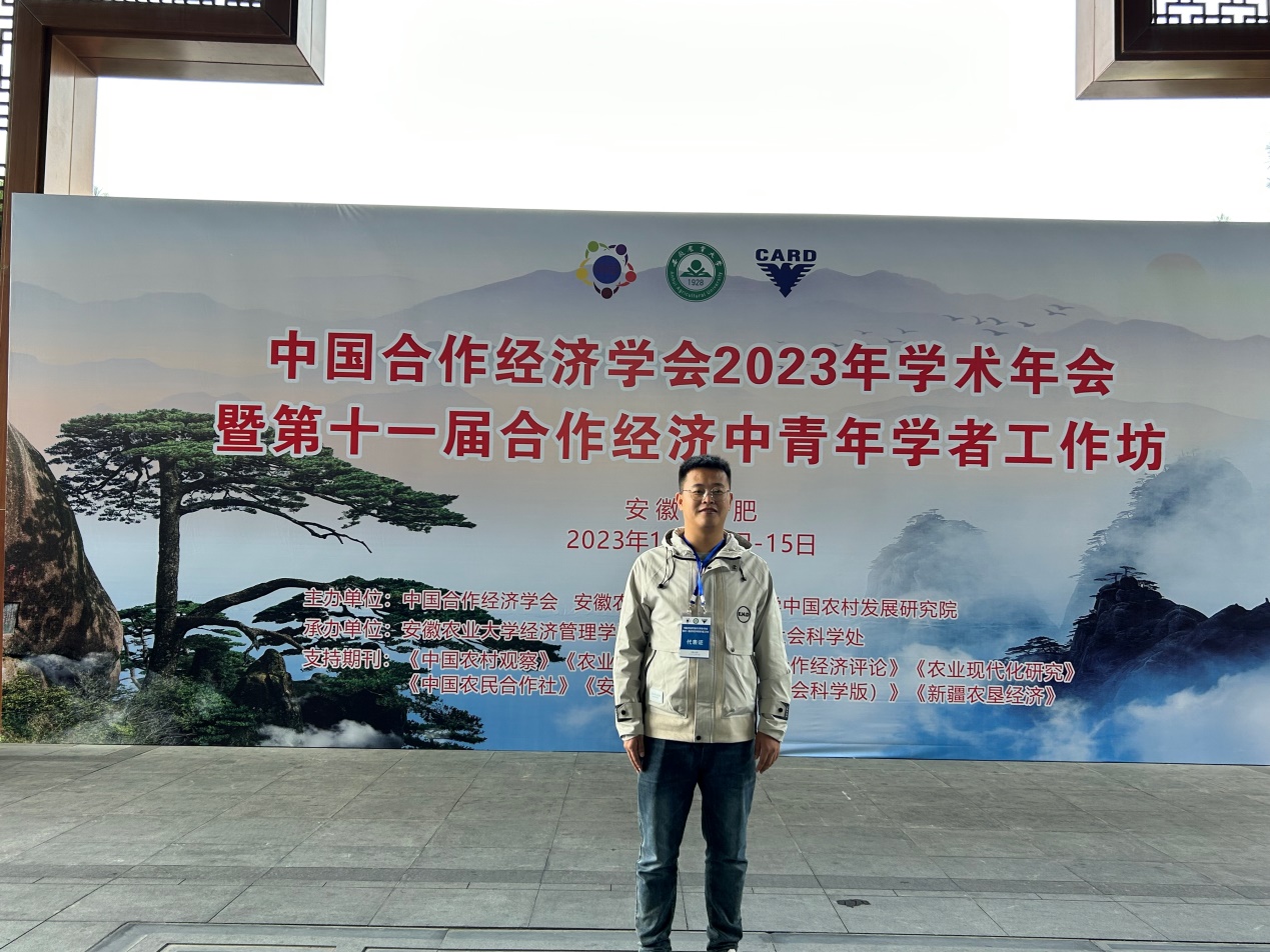 2023年10月14-15日,中国合作经济学会2023年学术年会暨第十一届合作经济中青年学者工作坊在安徽合肥成功举办。本次会议由中国合作经济学会、安徽农业大学、浙江中国农村发展研究院主办,安徽农业大学经济管理学院、安徽农业大学社会科学处共同承办。来自全国高校、科研院所和政府等机构260余名合作经济领域的专家、学者和实践者受邀参加,深入开展合作经济领域学术交流,助力我国合作经济高质量发展。我院现代商贸研究中心“电商赋能新型农业经营主体高质量发展”研究团队刘国强博士受邀参加。