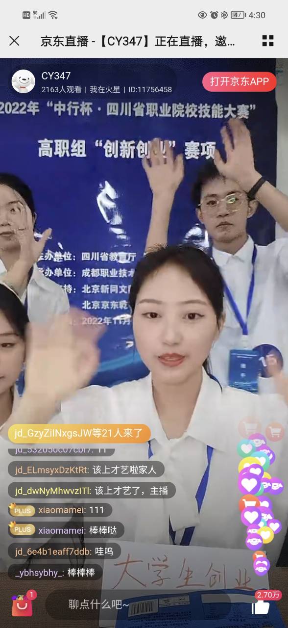 2022年11月4日-5日,由四川省教育厅主办的“2022年四川省高职院校大学生财经商贸类创新创业大赛”在成都职业技术学院举行。在马红莉、霍瑞超两位老师的精心指导下,由市场营销专业学生张国敏、李胤、邱李维,移动商务专业学生曾玥,会计与大数据专业学生余涵组成的参赛队伍经过20天的短期集训,赛场经过激烈的角逐,最终崭露头角,取得了省赛三等奖的好成绩。