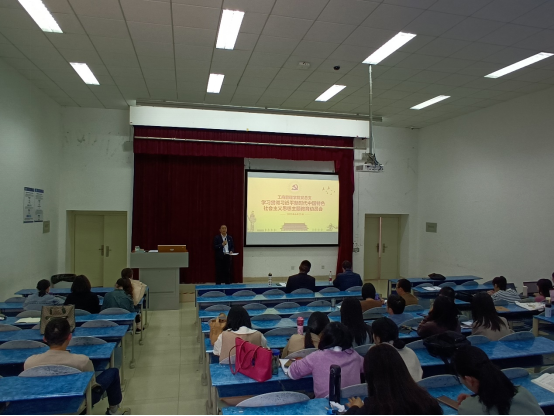 3. 2023年4月25日晚上,工商管理学院党总支书记郑代富,在B210开展书记讲党课,工商管理学院2021级全体入党积极分子参加党课学习。