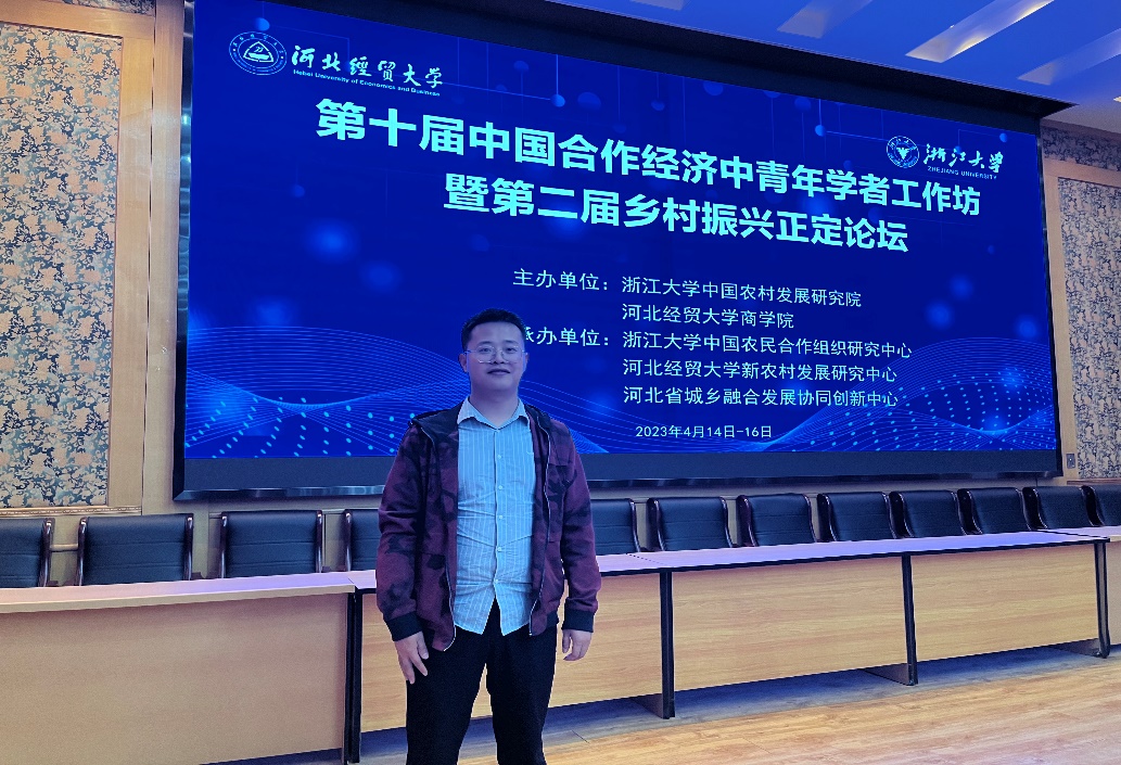 2023年4月15-16日,第十届中国合作经济中青年学者工作坊暨第二届乡村振兴正定论坛在河北正定举行,本次工作坊由浙江大学中国农村发展研究院和河北经贸大学商学院主办,由浙江大学中国农民合作组织研究中心、河北经贸大学新农村发展研究中心和河北省城乡融合发展协同创新中心承办,来自全国高校、科研院所和政府等机构近百名合作经济领域的专家、学者和实践者参加,我院工商管理学院博士刘国强受邀参加。