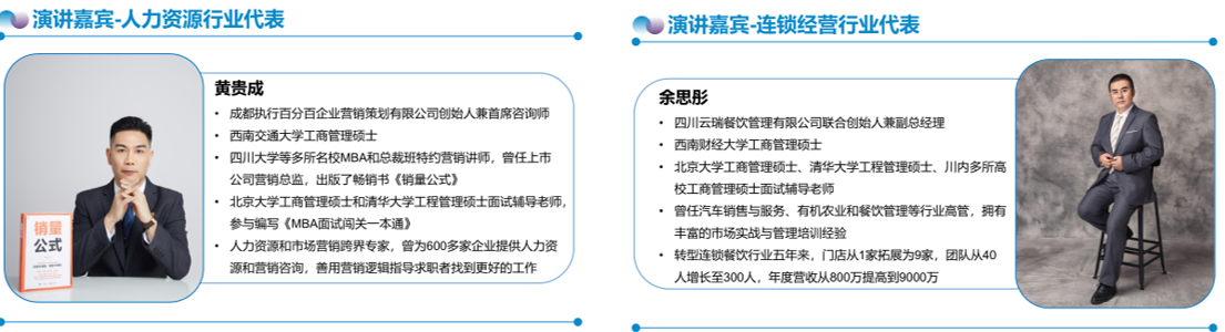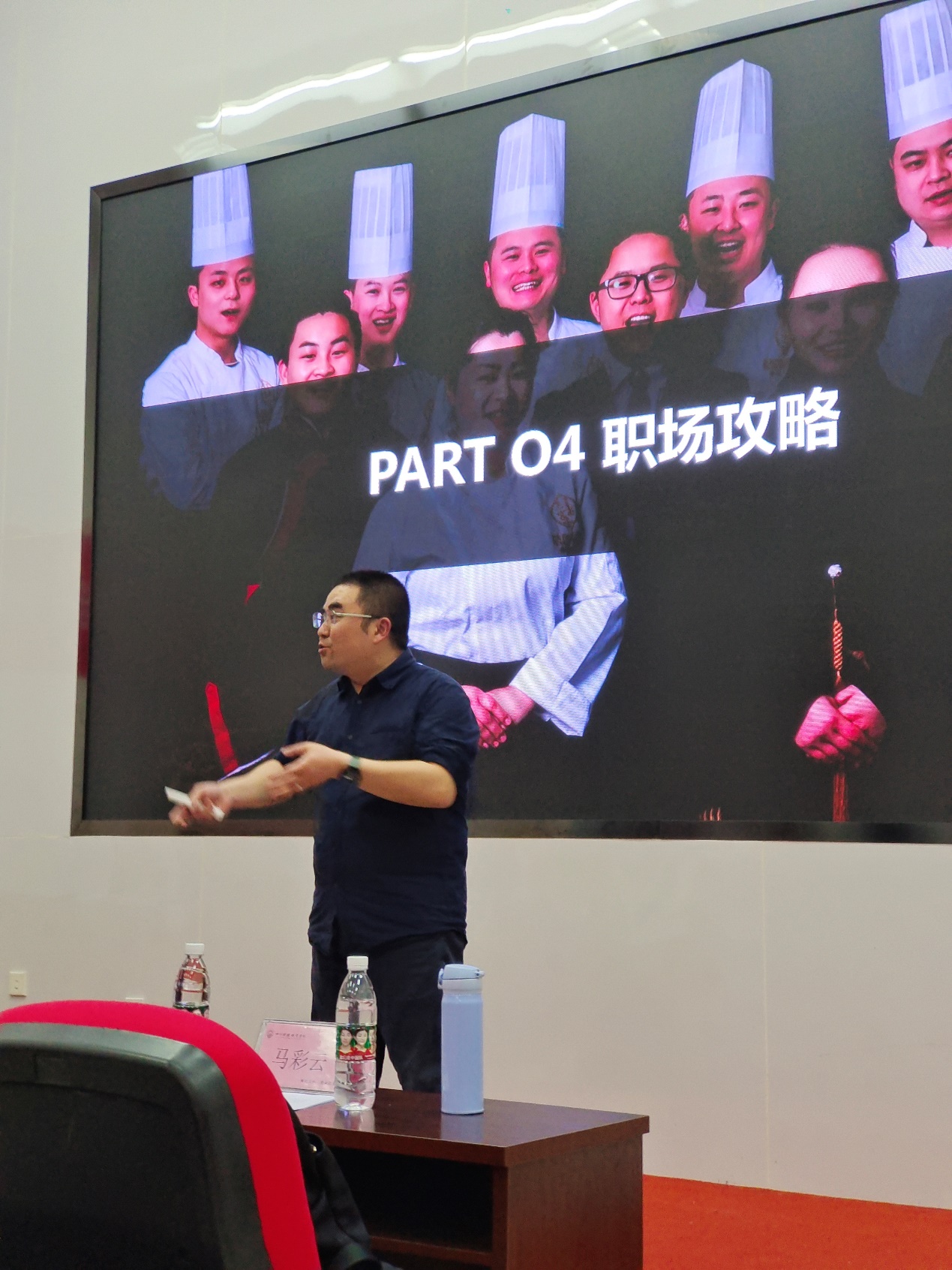 四川云端餐饮管理有限公司联合创始人兼副总经理余思彤老师,从其旗下品牌门店“都氏二当家”的品牌简介和市场定位出发,针对连锁餐饮企业的行业趋势及该行业的职场攻略与同学们进行了深入浅出的分享,其中连锁服务行业的人才需求冰山模型和连锁店长的能力进阶给同学们带来了很大的触动,对同学们的职业规划和职业成长产生了强大且积极的影响。