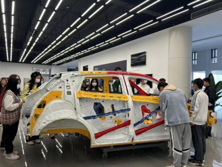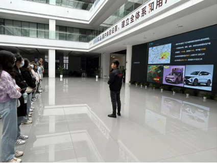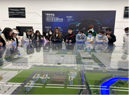 在领克汽车成都工厂,学生参观了领克企业文化展厅和数字化展厅,了解企业生产运营情况,实地感受领克汽车物流的智能化、信息化、自动化水平。