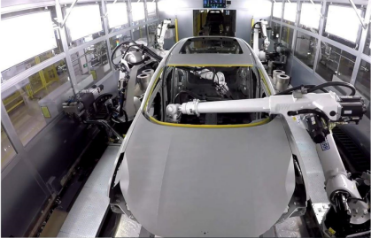 在谭经理的带领下,同学们先后参观了生产车间以及总装车间,了解汽车及零部件物流、厂内智能生产物流、智能仓储的真实场景,感受到了机械赋能“端到端无人化”产线物流。