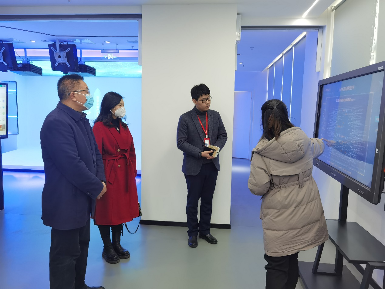 陈世平博士一行首先参观了中科大旗数字化云展厅,中科大旗董事长助理丁钢颖等详细介绍了公司概况、业务特色和核心产品。陈博士等围绕公司的知识产权、运营运维和行业监管等主题与中科大旗团队进行交流。