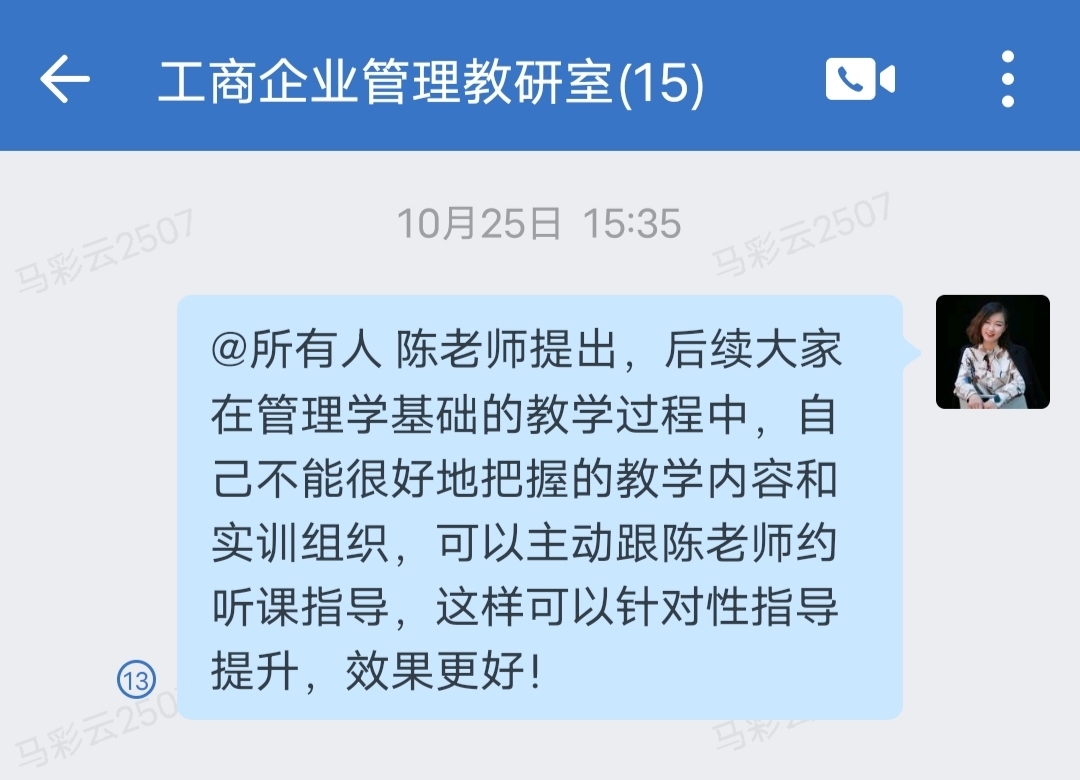4. 教学督导工作与教研室教研活动有机结合起来。管理教研室在新生开学之前,就邀请专职督导对新教师进行指导,做到了教学质量的事前控制。经过一段时间后,又邀请专职督导和兼职督导,指出新教师在教学中存在的各种问题,并提出改进意见和建议,实现了教学质量的事中控制;