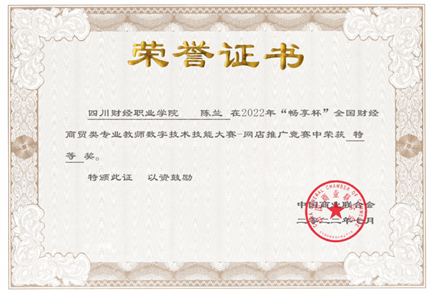 7月21日,2022年“畅享杯”全国财经商贸类专业教师数字技术技能大赛网店推广赛项落下帷幕,工商管理学院教师陈兰获得全国特等奖,并被中国商业联合会授予“全国商贸服务业技术能手”称号,另外两名专任教师吕世伟老师和余奇训老师均荣获全国二等奖。