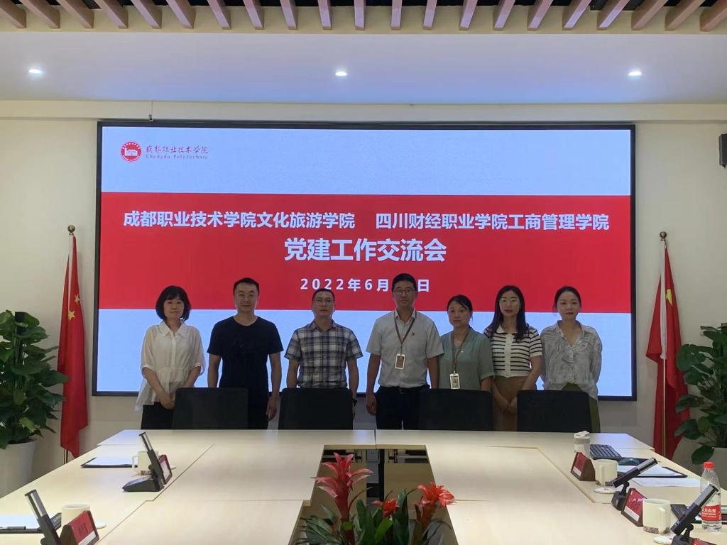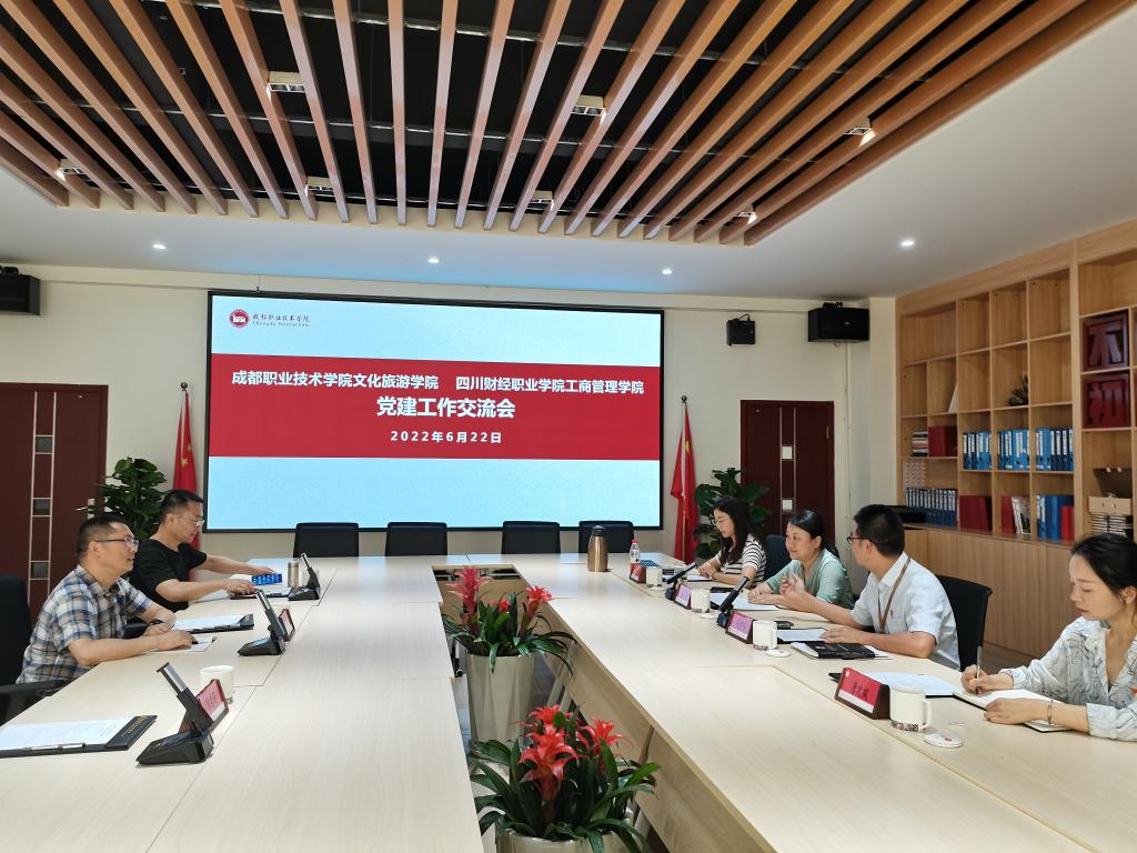 2022年6月23日,工商管理学院党总支书记郑代富、副院长梁小晓、组织员陈秀丽一行3人,赴成都职业技术学院文化旅游学院进行交流学习。受到成都职业技术学院文化旅游学院党总支吴学伟副书记等老师的热情接待,并进行了党建等方面的深入交流。