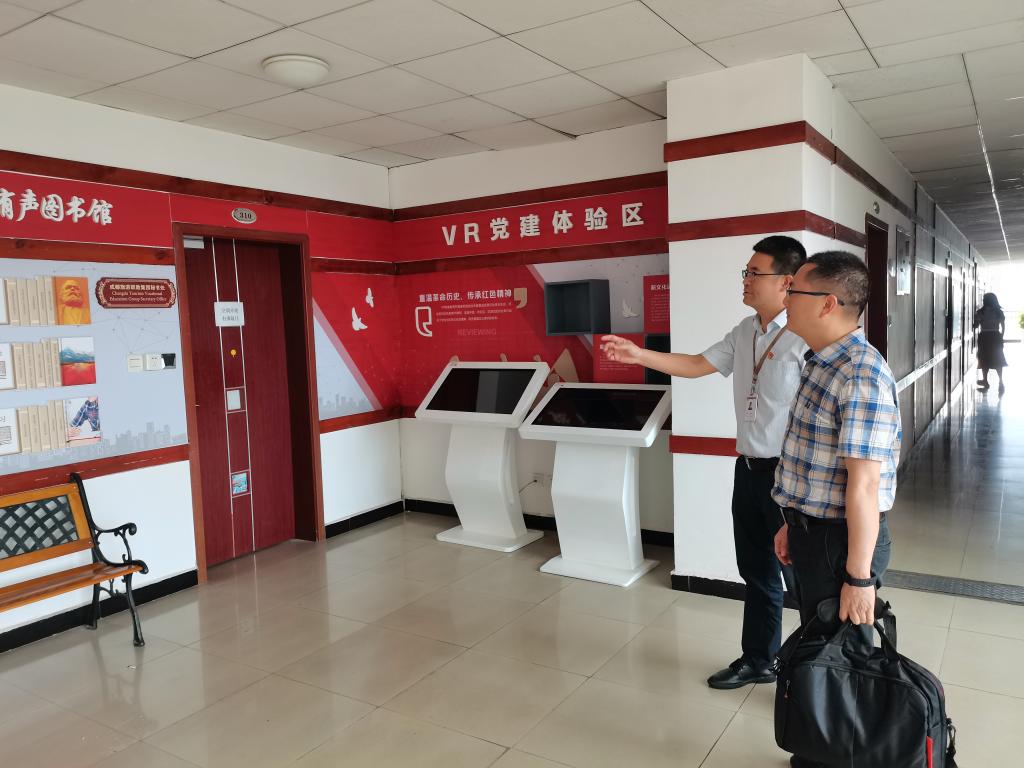 首先,在吴书记的带领下,参观了文化旅游学院党建工作室,浓厚的党建文化氛围、创新的喜马拉雅有声图书馆、独特的VR党建体验区,都让大家印象深刻。