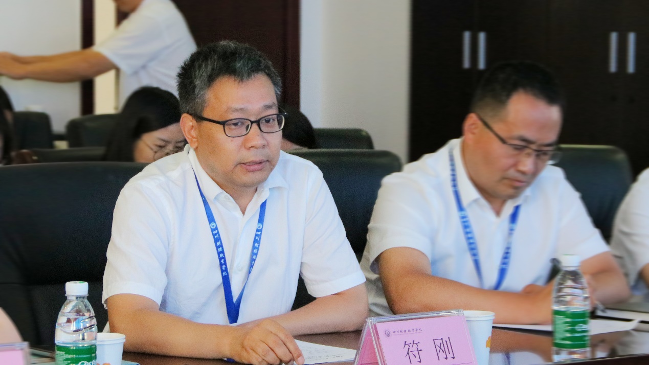 符刚副院长(主持工作)代表财院领导向出席会议的各位企业领导和行业专家们表达了学院对企业一直以来的支持的衷心感谢,并向与会者介绍了财院59年来的发展变迁和取得的成绩,以及学院十四五规划发展战略的核心内容,最后表达了财院对企业一如既往的校企合作支持的谢意的同时,寄希望未来能在科学研究、社会服务等领域加强校企合作,越走越长远。