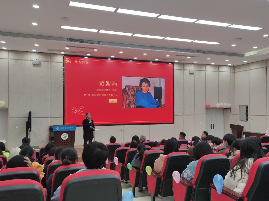 第二位分享的校友是78级基建财务与信用专业的王建成学长,现任四川后来投资咨询服务有限公司总经理。学长说:在我们那个年代,生活是极其艰苦的,学校远不如今天这么优越的条件,他在分享表达了自己对母校浓浓的怀念和感恩之情。他告诫同学们将来进入社会之前,就要对自己有明晰的定位,同时对社会也要有认知。