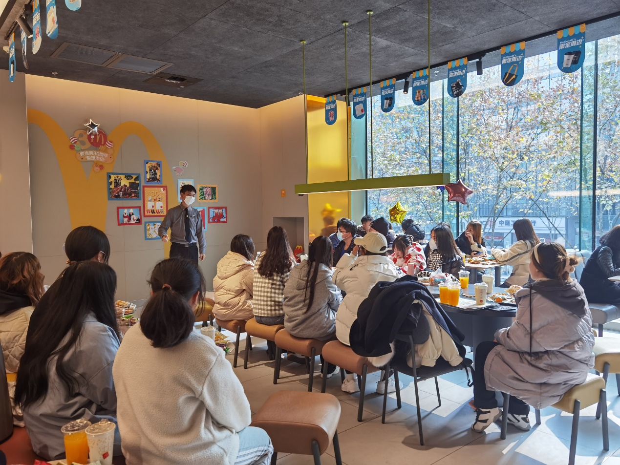 为顺利启动2022年春季学期2021级麦当劳学徒制新生的实习工作,让同学们在实习之前对麦当劳有更加深入和直观的认知,并初步建立对麦当劳的归属感和认同感,2021年12月21日下午,在工商管理学院三位老师赵乾坤、姚宗露、王江雪的带领下,2021级麦当劳学徒制班33名同学来到位于春熙路的麦当劳旗舰餐厅进行了半天的参观实习。