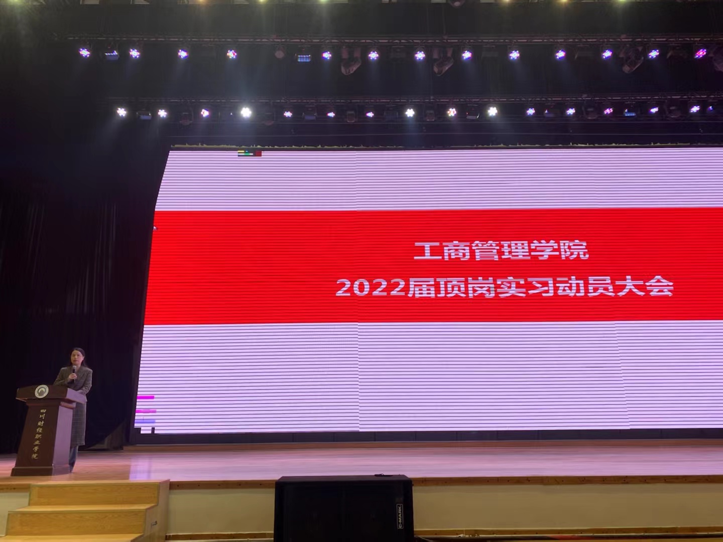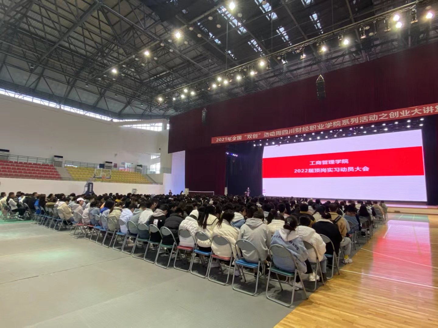 工商管理学院于2021年12月6日中午12:40在阳光体育馆召开了2022届毕业生顶岗实习动员大会。参加本次动员大会的有工商管理学院副院长(主持工作)刘瑶、党总支书记郑代富、副院长梁小晓、移动商务专业教研室主任赵乾坤、实习实训教研室主任霍瑞超、二级学院就业干事阿尔阿且,以及2022届各毕业班辅导员及在校的同学们。动员大会由副院长梁小晓副院长主持。