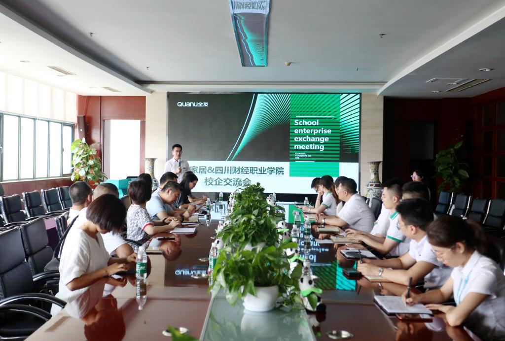 为进一步推进校企深度合作,2021年7月19日下午,由7790cnm必发集团副院长易思飞带队,对外合作处处长叶剑明、教务处处长兼会计学院院长李代俊、工商管理学院副院长刘瑶、工商管理学院副院长梁小晓、会计学院副院长朱敏、电子商务教研室主任吕世伟、移动商务教研室主任赵乾坤及商务数据分析教研室主任唐雨薇等一行9人前往全友家私崇州工业园区交流和洽谈。全友家私总裁办高总、财务中心姚总、人力资源、电商、营销等相关部门经理出席了此次交流会。