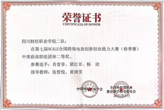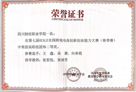 在4月16日落幕的第七届OCALE跨境电商大赛(春季赛),是由移动商务专业6名同学分为两支队伍代表参赛。其中一队王鑫、高溯、向春霞,二队肖壹菲、梁红亚、杨欣,在指导教师张皙悦、黄婧雯带领下参加此次比赛。经过为期三天紧张的比赛,我校取得了令人可喜的成绩,分别荣获两个高职组团体二等奖。