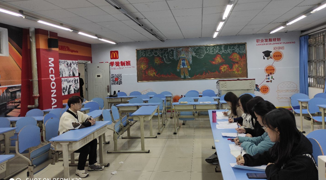 本次面试活动为期两天,采取轮流面试的形式,设有面试官席位和面试者席位,将同学们分为五组,轮流担任面试官和面试者,使每位同学都能在面试官和面试者的担任过程中获得感悟和收获,能够取长补短,不断完善自己的面试技巧。本次面试由周锐老师主导,严格按照正规面试的形势进行,全真的面试场景能让同学们感同身受。