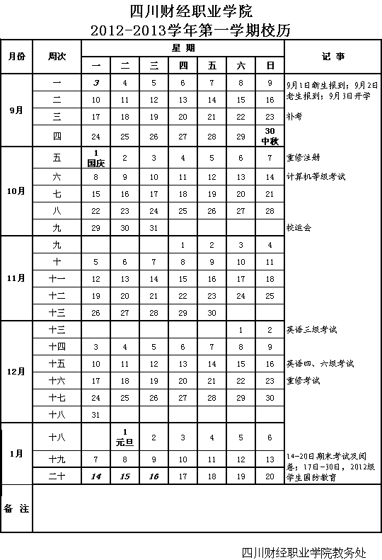 2012年(秋)校历
