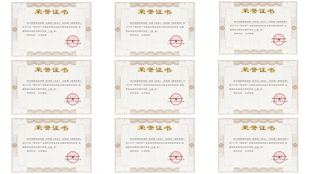 据悉,本次大赛来自全国30个省、自治区、直辖市,共500余名选手参加选拔赛,最终143名选手晋级总决赛。经过激烈的比拼,2022级农村电子商务专业学生王星懿、王堃获一等奖;何洁玲、孙韵秋、唐盈、郭文涵获二等奖;孙稼苗、邹蓝娟、陈语萱获三等奖。