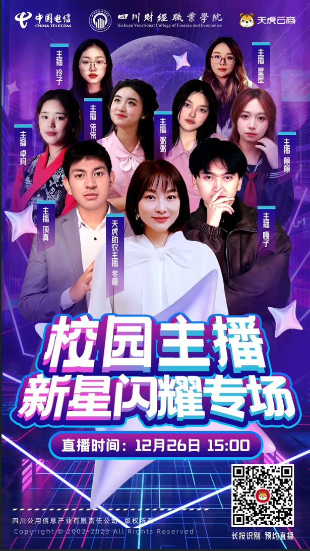 2023年12月26日下午19点18分,一场持续260分钟的“校园主播新星闪耀专场”直播活动圆满结束。本场直播观看人数2362人,成交订单988件,成交额近3万元。