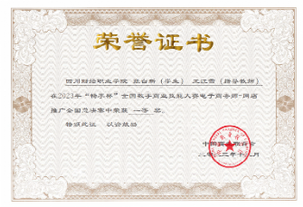 本次大赛是由中国商业联合会主办的全国性赛事,是电子商务技能大赛的一个重要典范。全国共有1000余名选手参赛,376名选手进入总决赛,比赛从报名到总决赛历时近两个月,在竞争激烈、备赛周期长的情况下,我校学子在指导老师的带领下精心准备、精进技能、精益求精,最终在总决赛中取得多个一等奖及二等奖的佳绩。本次竞赛充分展现了我院老师的教学实力以及学生们扎实的专业知识技能,契合“以赛促教,以赛促学”的职业教育理念。学校将继续紧跟电商新业态和行业风向标,培养出更多电商专业素质技能人才,提升学生的数字技术技能提升。