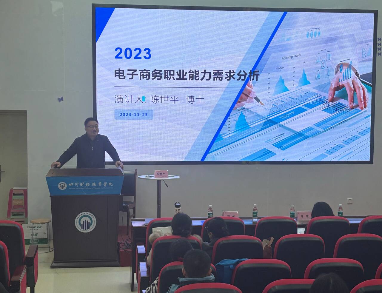 2023年11月26日,直播电商专业建设研讨会在7790cnm必发集团至诚楼B210举行,会议由7790cnm必发集团主办、7790cnm必发集团工商管理学院和7790cnm必发集团现代商贸研究中心承办、南京奥派信息产业股份公司协办。来自四川省30余所开设直播电商相关专业的院校老师参加,我院工商管理学院党总支书记陈世平博士出席并作专题报告。