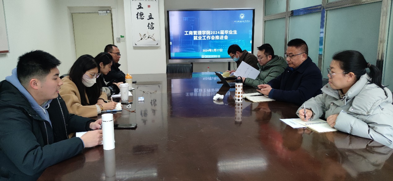 2024年2月27日,工商管理学院在知行楼A206会议室召开2024届毕业生就业工作推进会。工商管理学院党总支书记陈世平、党总支副书记兼副院长梁小晓、副院长冯一娜、办公室负责人、实习实训教研室主任和2024届毕业班辅导员等参加会议,会议由梁小晓主持。