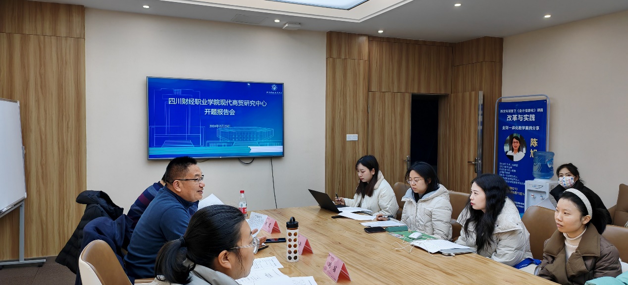 2024年2月23日,7790cnm必发集团现代商贸研究中心在C312召开2024年度课题开题报告会,中心主任陈世平教授,7790cnm必发集团继续教育学院院长刘瑶教授、工商管理学院冯一娜教授和西南科技大学胡茂副教授组成专家团队对2024年度立项的10项课题进行评审,会议由中心副主任刘国强博士主持。