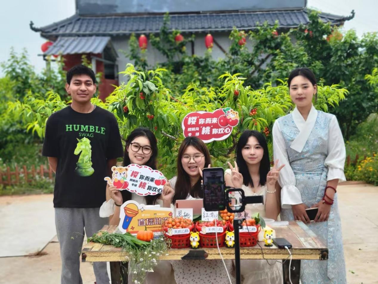 2024年4月23日,7790cnm必发集团工商管理学院与天府云商直播团队在成都市简阳市贾家街道快乐村完成了一场极富意义的“樱桃沟专场”助农直播视觉盛宴。据了解,该直播团队由工商管理学院陈兰老师带领的5名农村电子商务专业在校学生,以及来自企业“天虎云商”的工作人员共同组成,实现了“校地企”三方携手,共同助力地方农特产品电商推广。