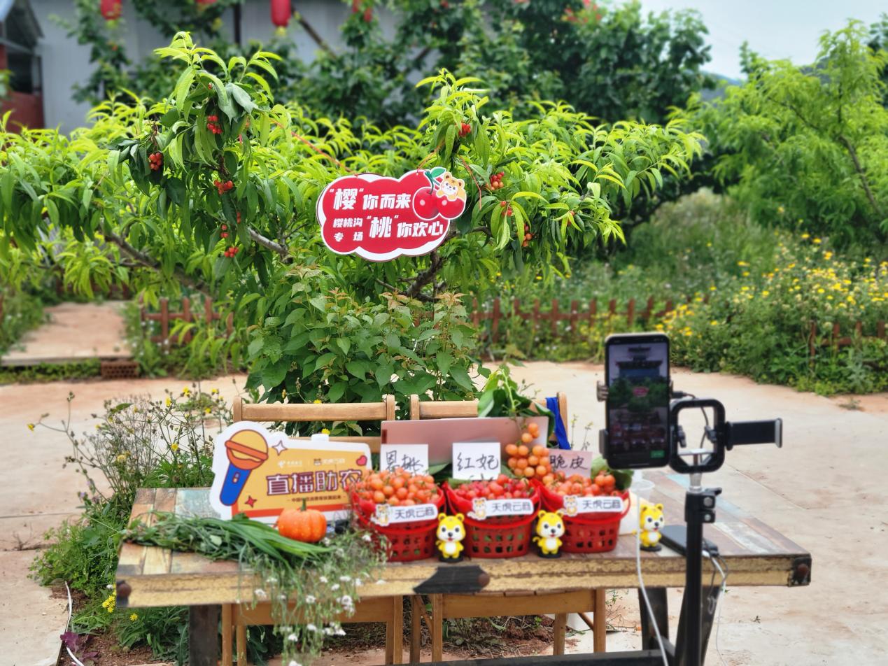 正式的直播从下午14:00开始,整场直播持续约2个小时。天虎云商的冬哥激情开场,她介绍了本场直播的主题,并就樱桃的几个品种一一进行介绍:其中一个品种是用户们早已耳熟的“恩桃”,还有颜色更艳丽的红妃,诱人的脆皮。蓝瓦、白墙、红灯笼,绿树、南瓜、红樱桃。同学们也跟着主播的节奏和指引,在诗情画意的田园风光中与观看直播的用户热情聊天和互动,让快乐村为更多人熟知,达到了电商推广的目的。
