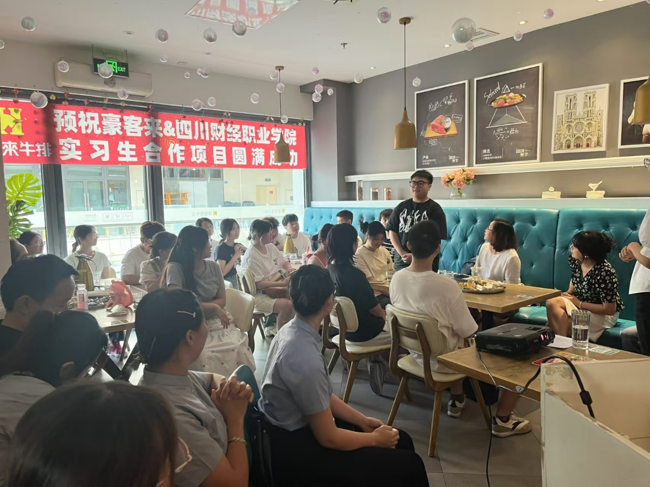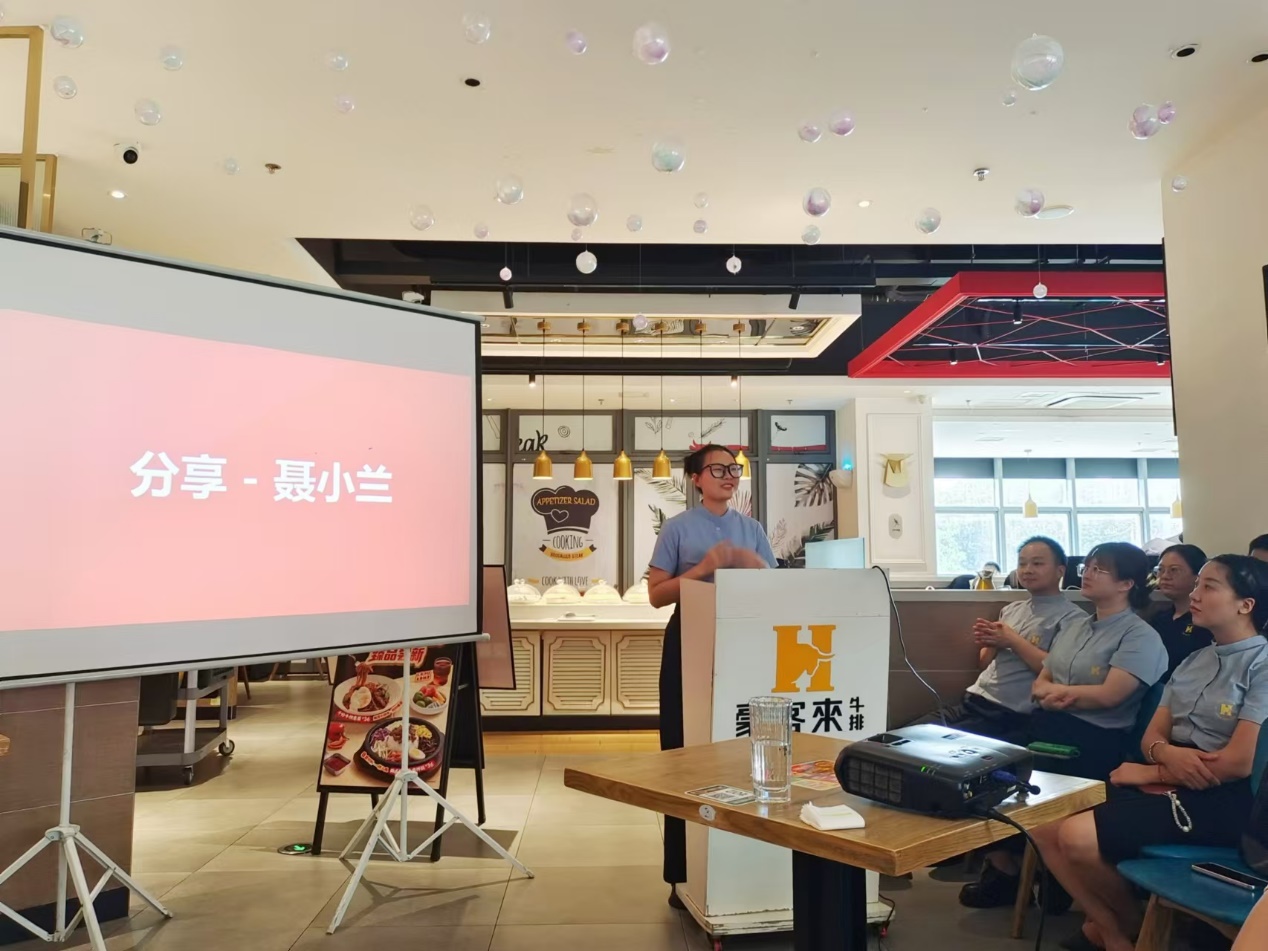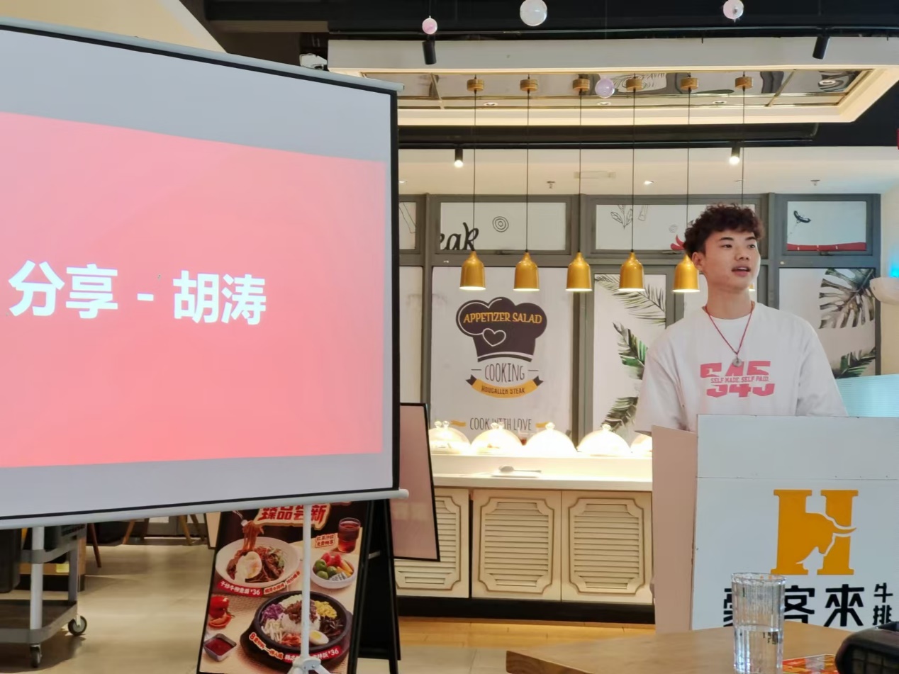 来自22级工商企业管理1班的首届订单班学生代表胡涛、来自21级市场营销2班(现成都青龙街餐厅副经理)聂小兰学姐分别做了分享。胡涛分享了自己暑期期间在豪客来工作的经历,鼓励同学要在工作中抱着越挫越勇的心态,不断地自我磨炼,直到能够游刃有余地处理工作中遇到的问题。聂小兰学姐分享了自己在豪客来由一位青涩腼腆的新人晋升为一名合格的门店副经理的成长经历,以及餐厅给予自己的个人发展及职业成长规划方面的认同和支持,鼓励学弟学妹们要对自己的未来充满信心。