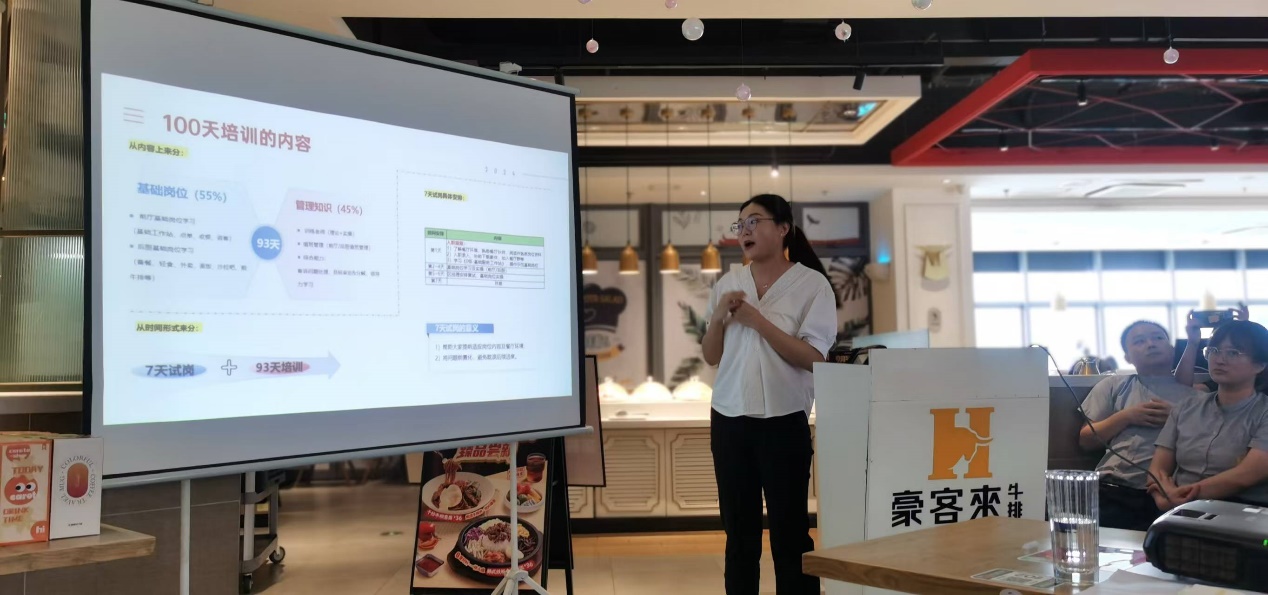 在自由交谈环节,豪客来为同学们发放了精美的入职大礼包,也更加详细地介绍了百天培训的基本情况、未来的职业规划以及餐厅的注意事项。同时,区经理与同学们展开了一对一的沟通,耐心为同学们解答未来在豪客来工作存在的疑惑。