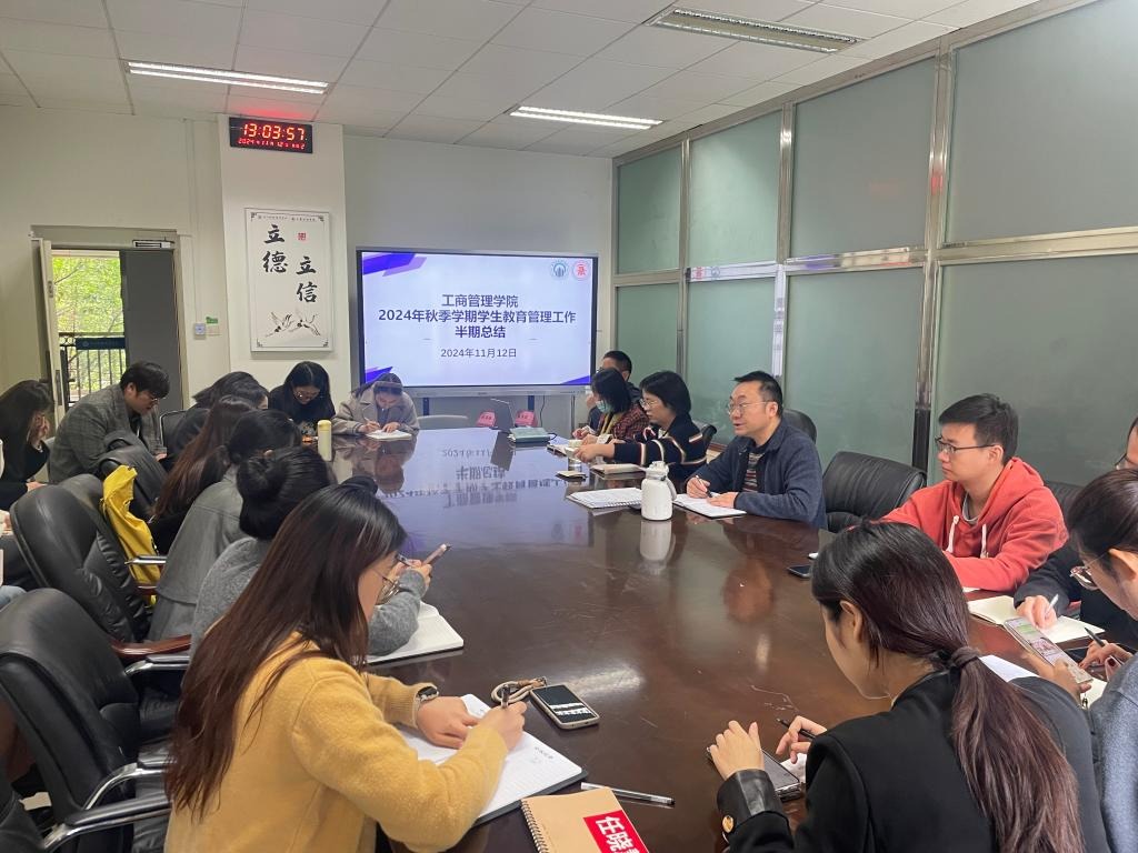 2024年11月12日,工商管理学院在A206会议室召开了2024年秋季学期学生教育管理工作半期总结会议。会议由工商管理学院党总支副书记梁小晓主持,全体辅导员参会。