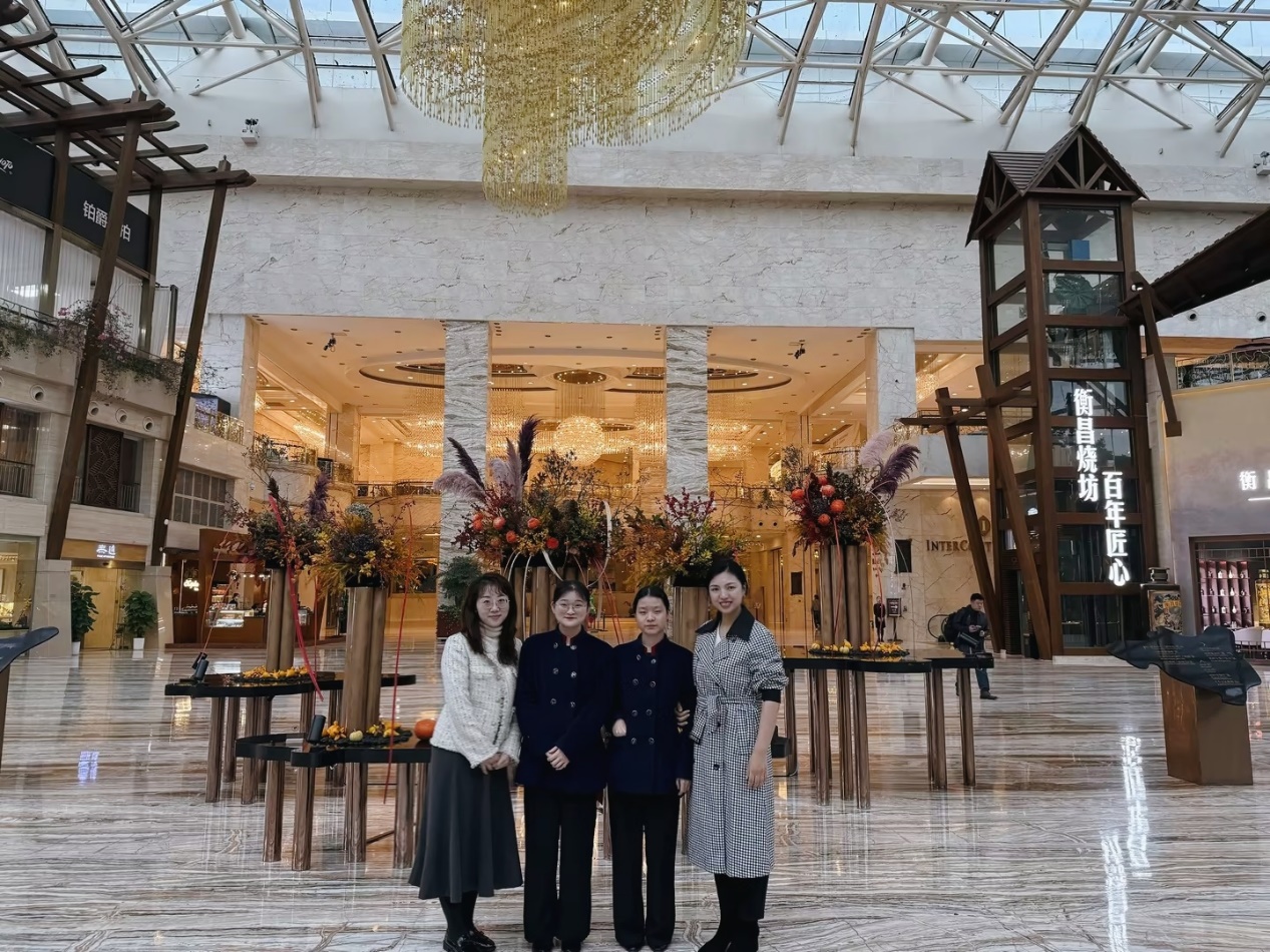 近日,为了深入了解校企合作项目的实施效果及毕业生的工作状况,酒店管理与数字化运营教研室主任林莉与教师王骆丹一同前往成都环球中心天堂洲际大饭店,进行了实地走访与交流。此次走访重点关注了已在该酒店就业的2021级毕业生罗冰燕与龙鑫悦的工作情况与职业发展。