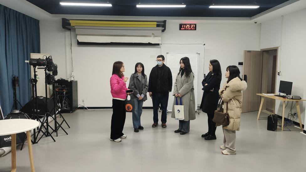 刘露主任一行实地考察了农特产品直播基地、商品拍摄实训室等实践教学场所,详细了解"项目引领、任务驱动"教学模式实施情况。座谈会上,双方聚焦专业群课程体系优化、校企协同育人机制创新等议题展开研讨,并就共建共享实训资源、联合开发特色课程达成初步意向。