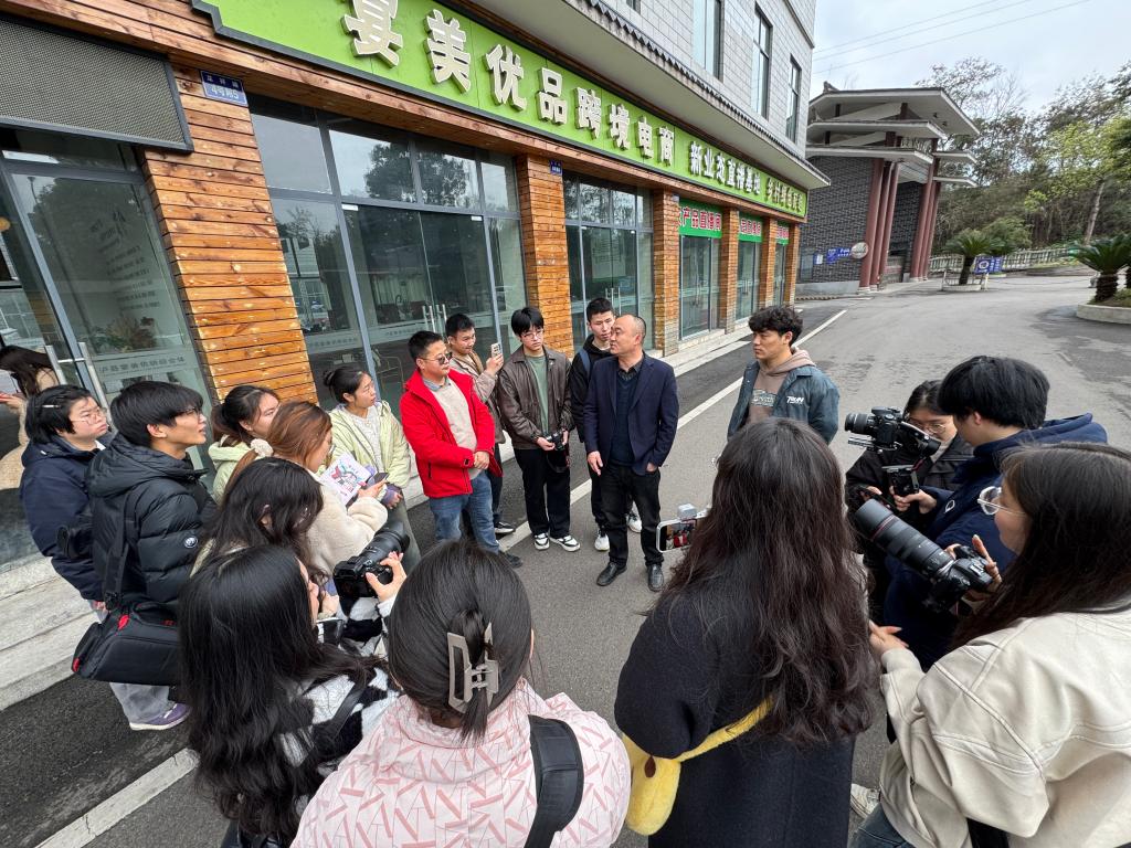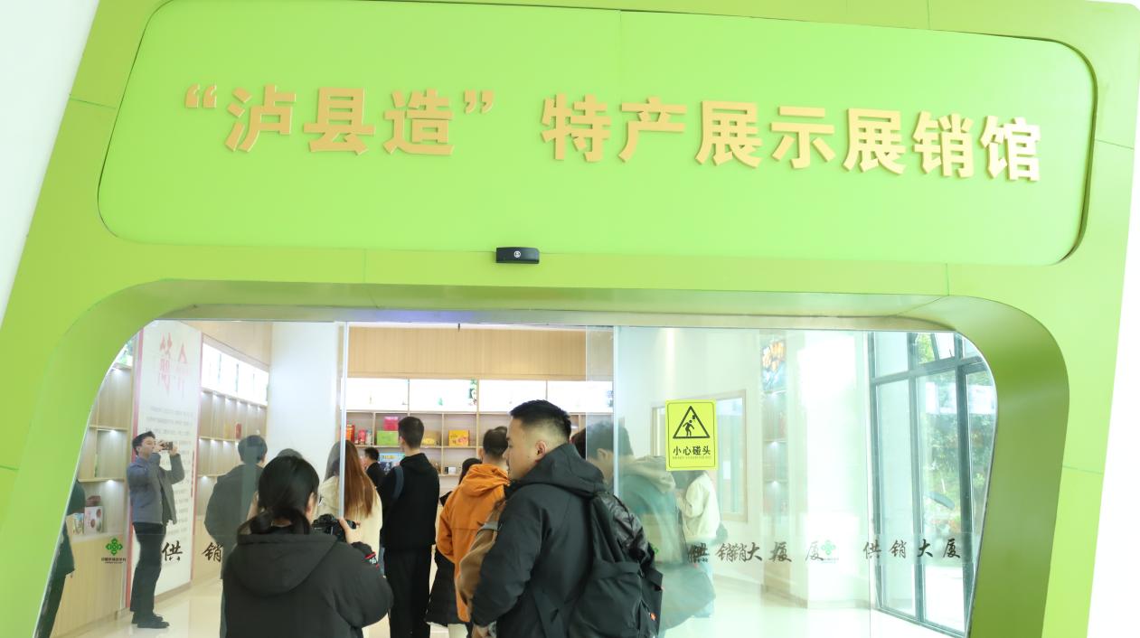 活动首日,师生团队走进泸县电商大厦,首站参观了泸县电子商务产业园。园区负责人王林向师生详细介绍了县域电商发展历程、规模、核心销售品类及市场覆盖情况等。在“泸县造”特产展示展销馆内,琳琅满目的本地特色产品令师生驻足。20个镇街的特色产品,从非遗手工艺品到特色农产品,学员们逐一分析产品包装设计、品牌定位与电商适配性,探讨如何利用短视频、直播等新渠道提升产品曝光度。