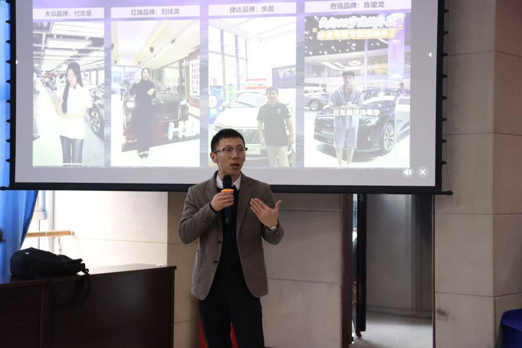 随后,企业HR李陈琛就岗位需求、发展前景及报名流程作了详细说明。他针对项目班对口的各类岗位,明确了相应的技能要求与职责内容,并结合捷达品牌的市场战略,分析了汽车行业在新媒体领域的就业机遇,强调项目班学员在毕业后可优先进入一汽大众捷达合作经销商体系。在报名环节,李老师清晰列出了面向2024级相关专业学生的基本条件,并公布了选拔流程与时间节点,提醒同学们把握机会、及时传达信息,踊跃参与报名。