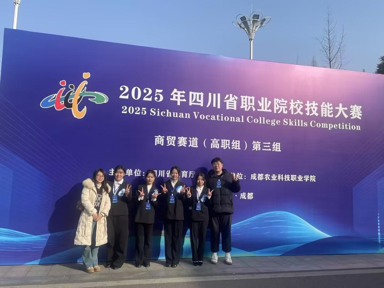 2026年1月14日至16日,由四川省教育厅主办的“中银杯”四川省职业院校技能大赛商贸赛道(高职组)外贸组比赛在成都农业科技职业学院举行,本赛项吸引了全省30余所院校参与。在工商管理学院孙家阳、王江雪老师的悉心指导下,我院学生代表队唐榛洢、唐菲怡、何婷婷、段诗玲在比赛中表现出色,凭借扎实的专业功底、精湛的实操技能和稳定的临场发挥,在众多参赛队伍中脱颖而出,成功斩获银奖。