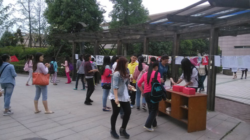 为了纪念五四,传承和弘扬五四精神,2014年5月15日中午,我系“五·四书画展”活动作品展示和投票在公寓门口小广场走廊举行。