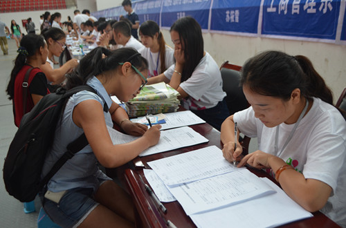 我系在学校正门,体育馆等处都设立了接待点。每当有新生和家长出现,我系的志愿者都会微笑地迎上去:“你好,7790cnm必发集团,工商管理系欢迎你!”,并主动地接过行李,引领新生去检录处办理相应手续。