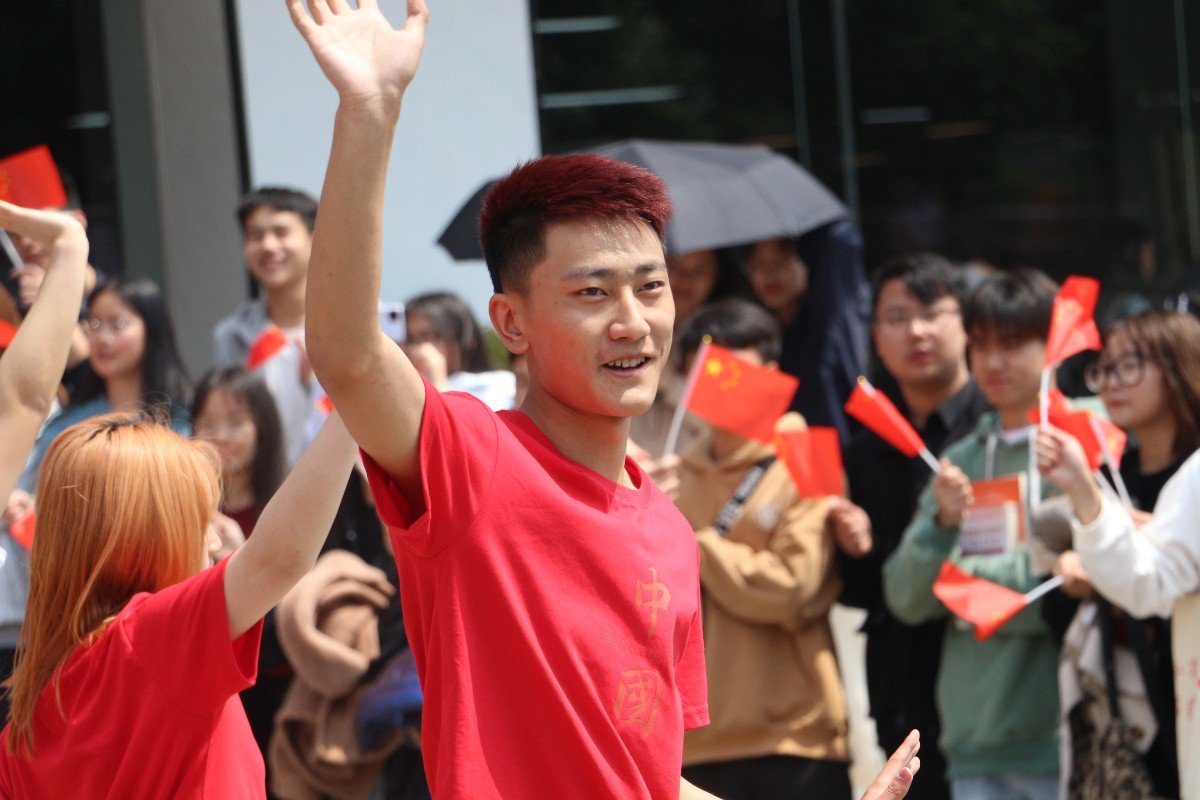 风过林梢,骄阳正好,食堂门口,一首首流行的音乐响起,一场精彩快闪活动即将拉开序幕。表演由一首《大中国》开场,依次是《点赞中国》《向快乐出发》《天天向上》《快乐崇拜》以《EIEI》收尾,共六只舞蹈串烧,人数随着歌曲的变换而增加。整场舞蹈,队伍或开或合,或散或聚,走位有条不紊,整齐有序;动作协调灵活,简洁有力,脸上洋溢着青春的笑容,灵动富有活力,感染着在场的每一位观众,散发着年轻人特有一份的朝气。现场热闹非凡,观看的同学们围成一圈,随着音乐挥舞着手上小红旗,为他们喝彩。