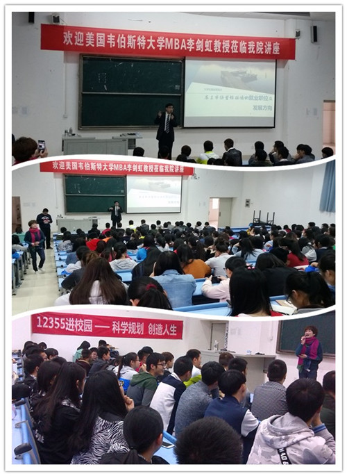 为了帮助学生更好地了解就业形势和就业趋势,更多地了解企业文化和社会状况,让大学生对自己的就业前景又比较明确的定位、以提升其就业竞争力,工商管理系联系成都市团委12355青少年服务台成都中心于2015年11月3日下午2点到校举办了一场“科学规划,创造人生”的专题报告会。报告会由前摩托罗拉(中国)公司地区市场经理、西南财经大学市场营销研究所所长、美国韦伯斯特大学MBA李剑虹教授主讲。