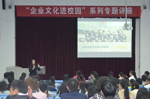 2015年11月3日下午14:00,学院B213阶梯教室,“企业文化进校园”系列专题讲座——《企业家眼中的职业规划》正在如期进行。本次讲座嘉宾刘文佳女士具有丰富的实战和培训经验,她是成都六维企业咨询管理有限公司总经理、六维电商学院院长、四川培训师联合会副会长、四川电商圈知名专家、国际电商艾奇奖评审以及多家传统企业电商高级咨询顾问。来自2015级各专业的新生聆听了讲座,接受了一场别开生面的职业生涯规划启蒙教育。讲座由我院对外合作处处长游秋琳主持。 在讲座中,刘总一改专题讲座讲大道理的传统,她从自己的从业经历讲起,以讲故事的形式,娓娓道来,循序引入。她分别从职业发展路径、个人感受和建议等三个方面与同学们分享了作为企业家眼中的职业生涯应该如何进行规划。