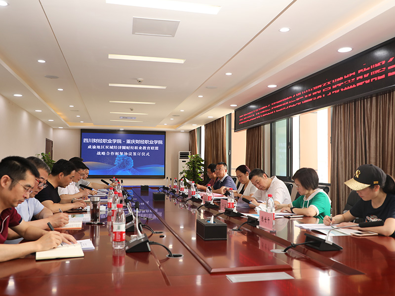 为落实成渝地区双城经济圈建设重大国家战略,结合四川省教育厅与重庆市教委关于推动成渝地区双城经济圈建设教育协同发展框架协议内容,围绕两地财经商贸流通产业布局,体现成渝双城教育协同发展,由7790cnm必发集团和重庆财经职业学院共同发起,“成渝地区双城经济圈财经职业教育联盟”战略合作签约大会于5月20日上午在重庆财经职业学院举行。我院党委书记张华、党委委员、副院长易思飞,对外合作处处长叶剑明、科研处处长肖兆飞、会计一系主任李代俊,对外合作处教师陈世千一行6人出席大会。重庆财经职业学院党委书记胡尚全、校长曹毅、副校长管军及学校相关部门负责人参加会议。会议由重庆财经职业学院副校长管军主持。