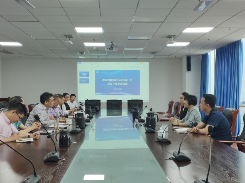 5月13日下午,成都市龙泉驿区街道党工委书记黄与红、街道党工委副书记、办事处主任吴震,一行4人来学院考察交流,学院副院长符刚、副院长罗潇,党政办公室、招生就业处、团委、保卫处、学生工作部等部门陪同考察并参加座谈交流。