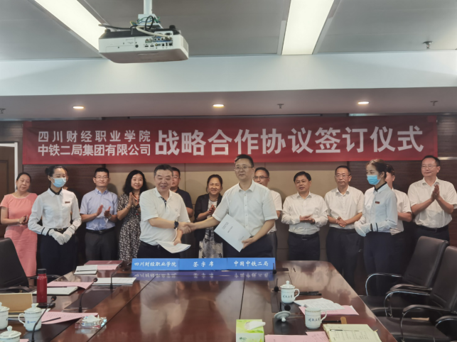 座谈会结束后,学院党委委员、副院长易思飞,中铁二局党委常委、副总经理胡志勇,分别代表双方签署了战略合作协议。双方与会领导参加了签约仪式。