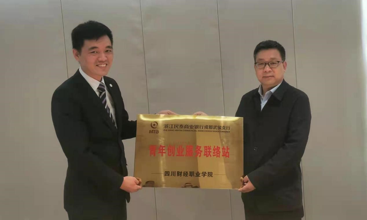 最后,浙江民泰商业银行成都武侯支行向我院授“青年创业服务联络站”。