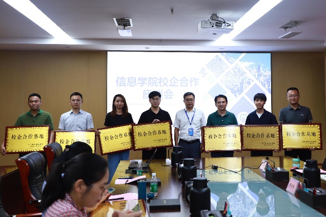 2022年6月16日信息学院校企合作单位座谈会在913会议室举行,学院副院长(主持行政工作)符刚,招生就业处处长卢彦,信息学院党总支书记傅丽,信息学院副院长许军列席会议,会议由信息学院院长李建军主持,12家校企合作单位参与了此次会议。